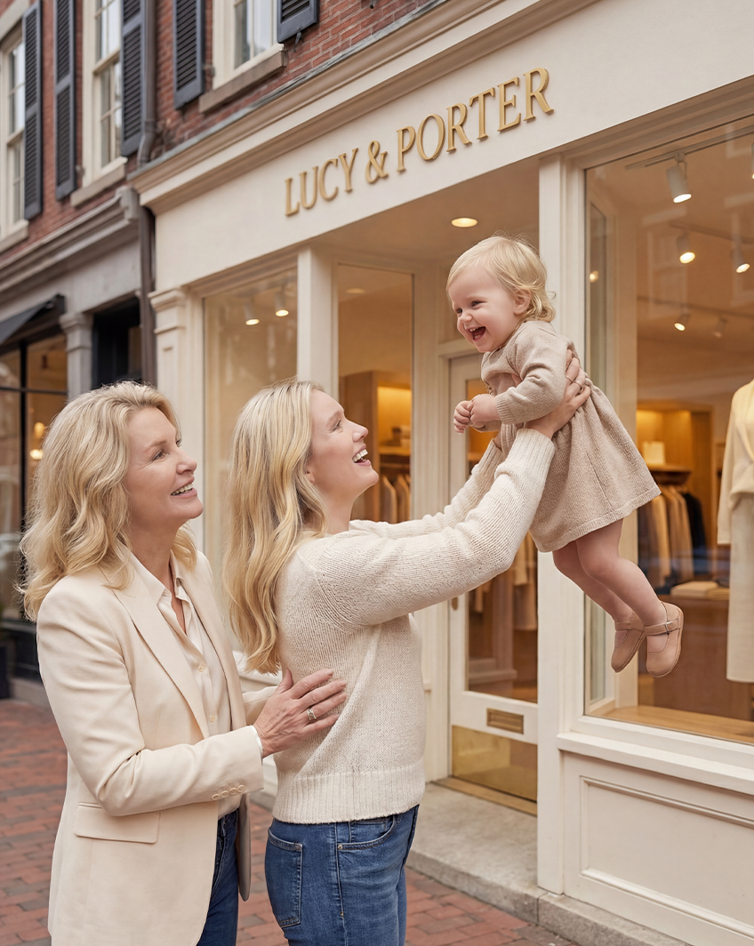 Lucy & Porter began with a mother’s dream 25 years of late-night sewing, handpicked fabrics, and the hope of creating a place where women felt truly seen. Little Porter grew up in the middle of it all, watching her mother pour her heart into every stitch and every customer who walked through the door.