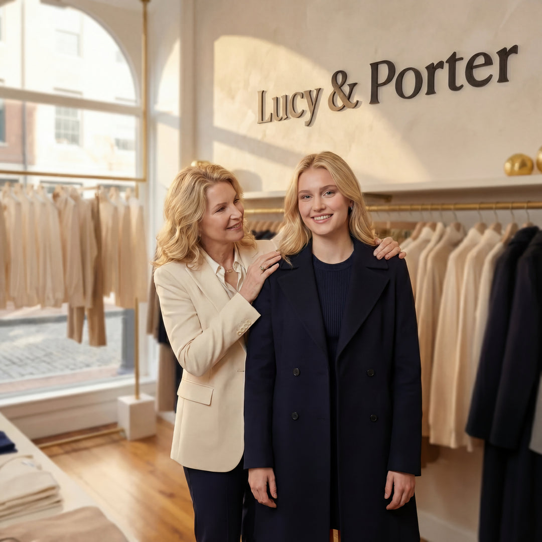 Lucy & Porter began with a mother’s dream — 25 years of late-night sewing, handpicked fabrics, and the hope of creating a place where women felt truly seen. Little Porter grew up in the middle of it all, watching her mother pour her heart into every stitch and every customer who walked through the door.